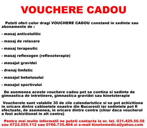 Achizitionati vouchere cadou reduceri Bucuresti pentru diferite sedinte sau abonament de masaj sector 1 2 - putem trimite si prin curierat rapid oriunde in Romania